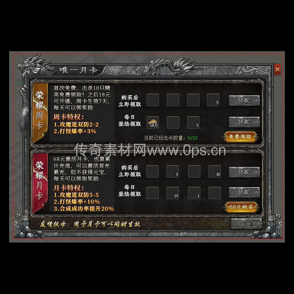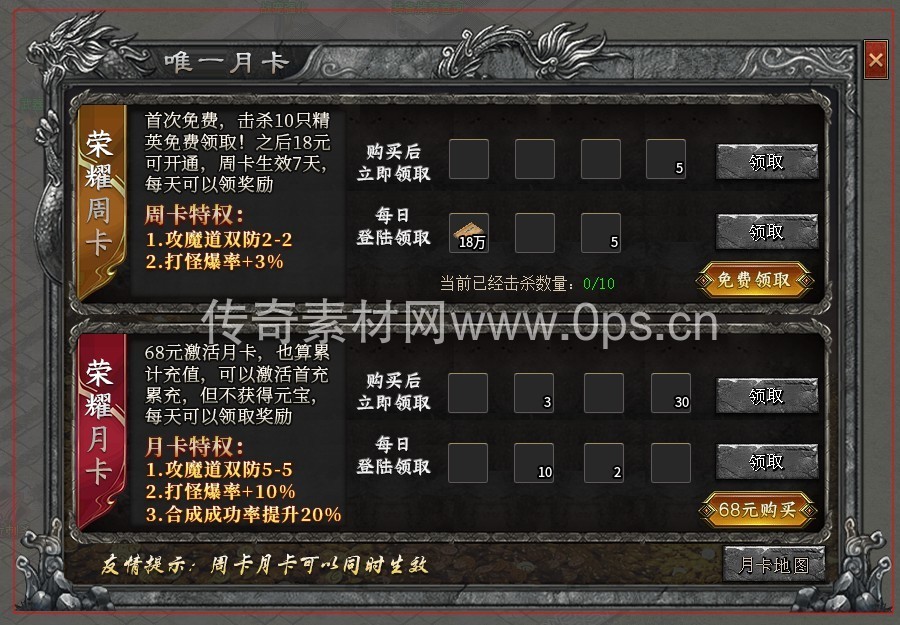 关键词:唯一月卡 荣耀周卡 荣耀月卡
